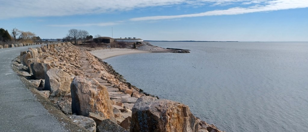 We arrived at Fort Phoenix, fronting onto Buzzards Bay, and found so many aspects to enjoy. First—yay!—no ice. Second, tons and tons of migratory birds hanging out just off shore.