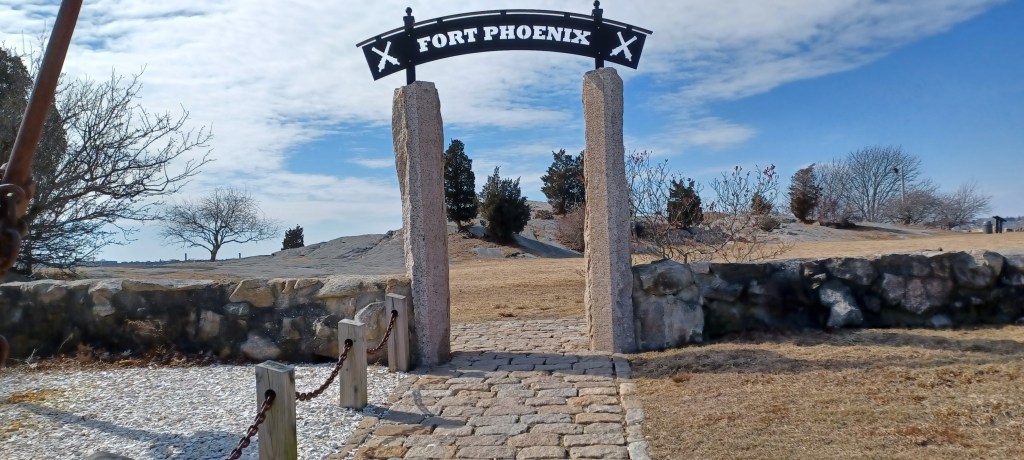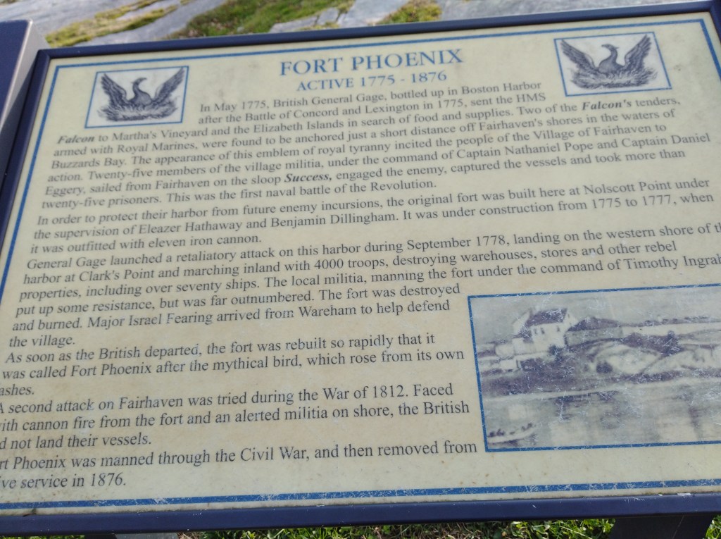 Fort Phoenix has historical significance, being the site of the first naval battle of the Revolutionary War. The conflict took place just days after the first battle of the war in Lexington and Concord. Replicas of the battlements, with cannons facing seaward over revetments, offer a sense of what it was like to defend the area from invading ships.