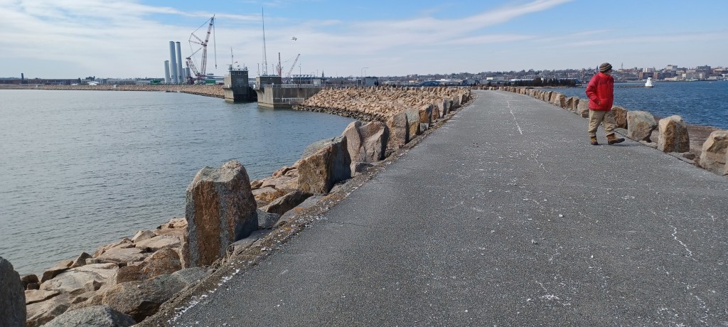 A hurricane barrier stretches across the Acushnet River, protecting both the Fairhaven and New Bedford sides of the inlet. Twelve-foot tides have in the past devastated these communities. Access to the actual barrier walls is limited.