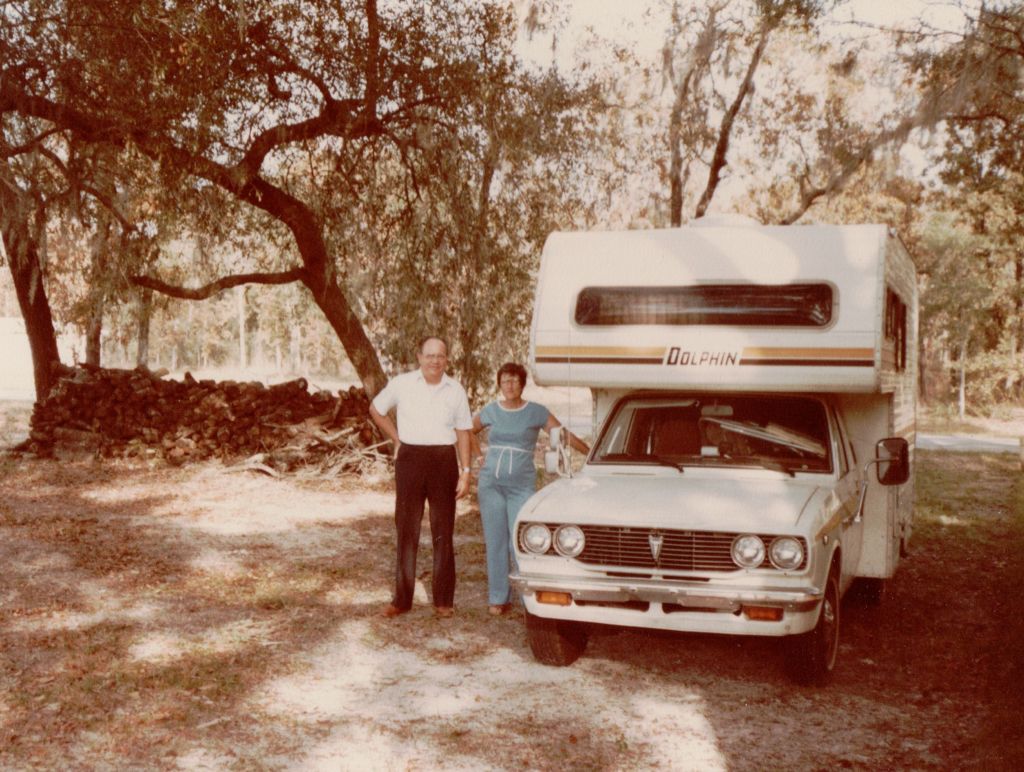 Mom and Dad with their first camper. Dad got lots of practice using his “fixing” skills on the camper