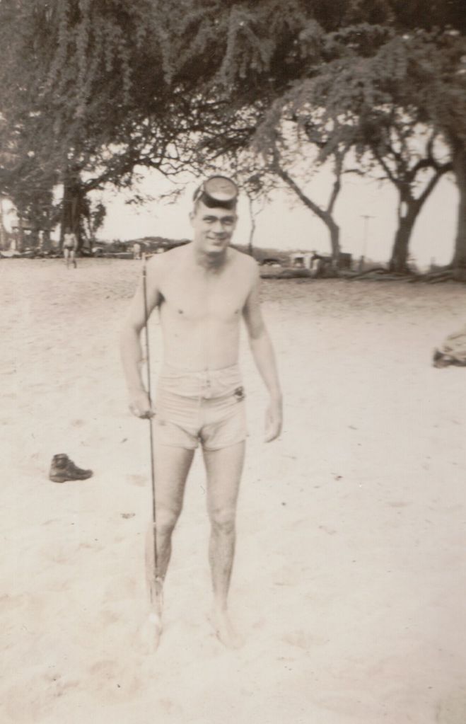 Dad spearfishing–he constructed his own mask in the days before they were commercially available
