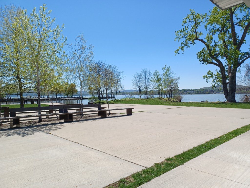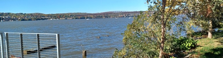 When traveling, we often find lunch spots along the way by looking at the map for what might be nearby. If we see a river, we then search for open space to get a water view to take a break from driving. On our way south from New England to see grandboys in Tennessee, we must cross the Hudson river.
