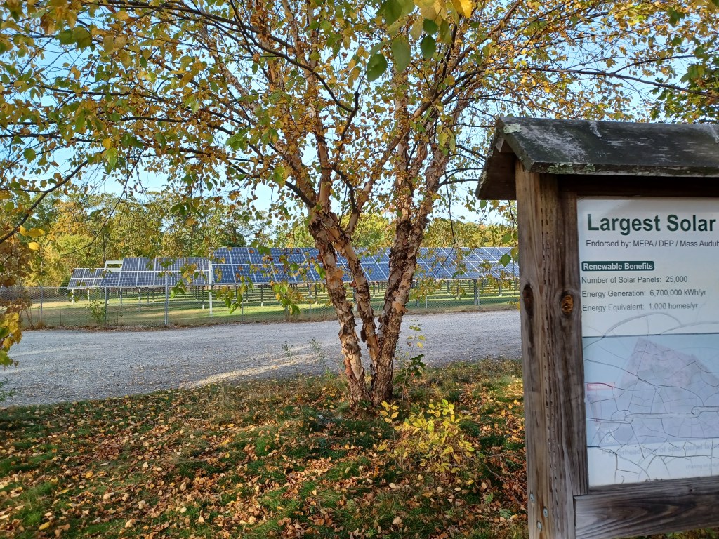Along the unpaved Ghost Trail was a sign indicating that the adjacent solar farm was the largest in New England. I wonder if that’s still the case. The sign did not look new. The acres of solar panels were impressive, but still…