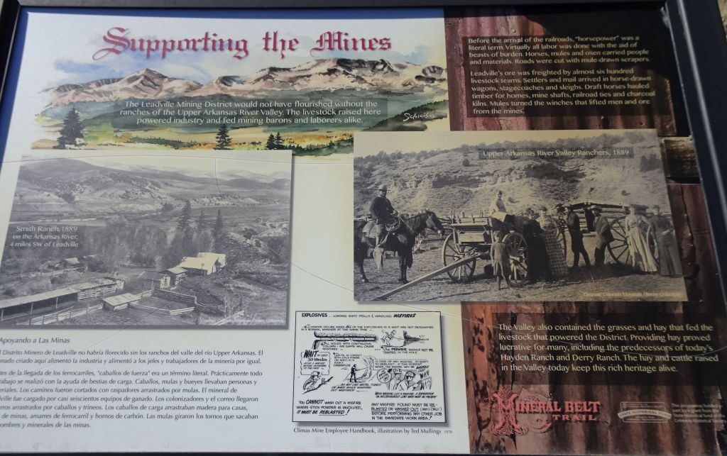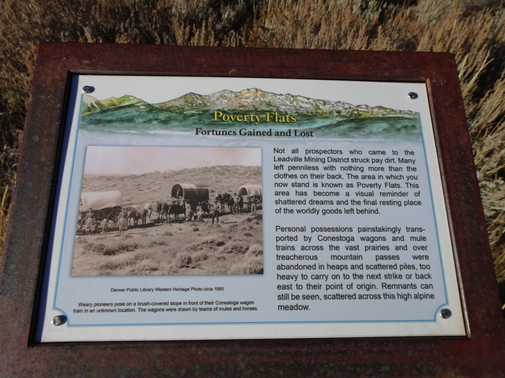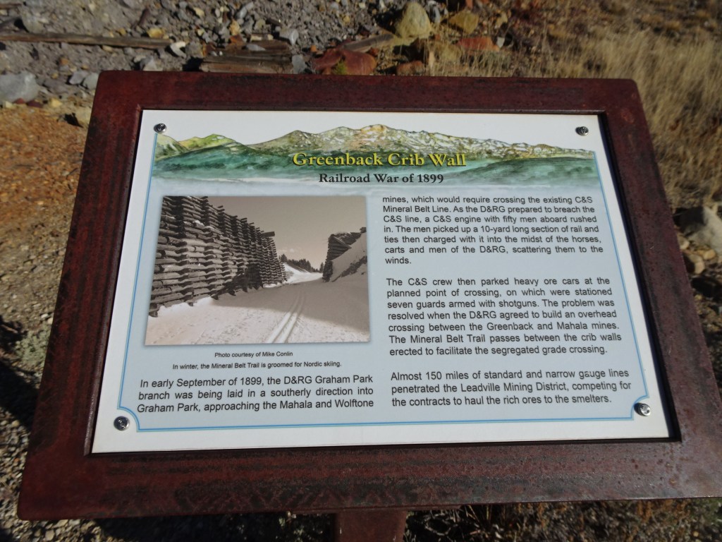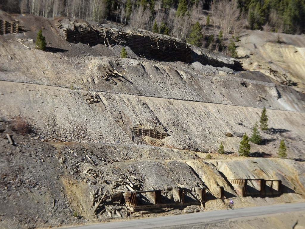 Several railroads were built to Leadville, including a narrow gauge railroad. In its boom times Leadvillle was a tourist destination. Signs of mining endeavors are visible all along the path.