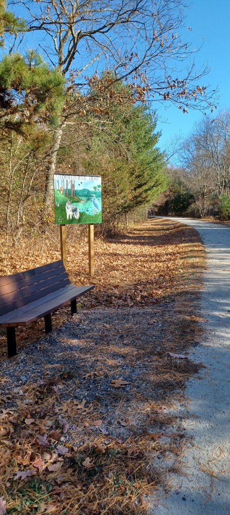 On a warm November day we headed over to Medfield, MA to visit the relatively new Medfield Rail Trail. The path is a work in progress as part of the Bay Colony Rail trail, with plans to connect with more of the rail trail located in Dover, Needham and Newton. The Needham and Newton portions are finished while the Dover section is in the planning stage. An updated map from December, 2023 details the completed sections of trail and the plans for further development of this recreational resource. It is also is part of the much larger trail network of the Bay Circuit trail.