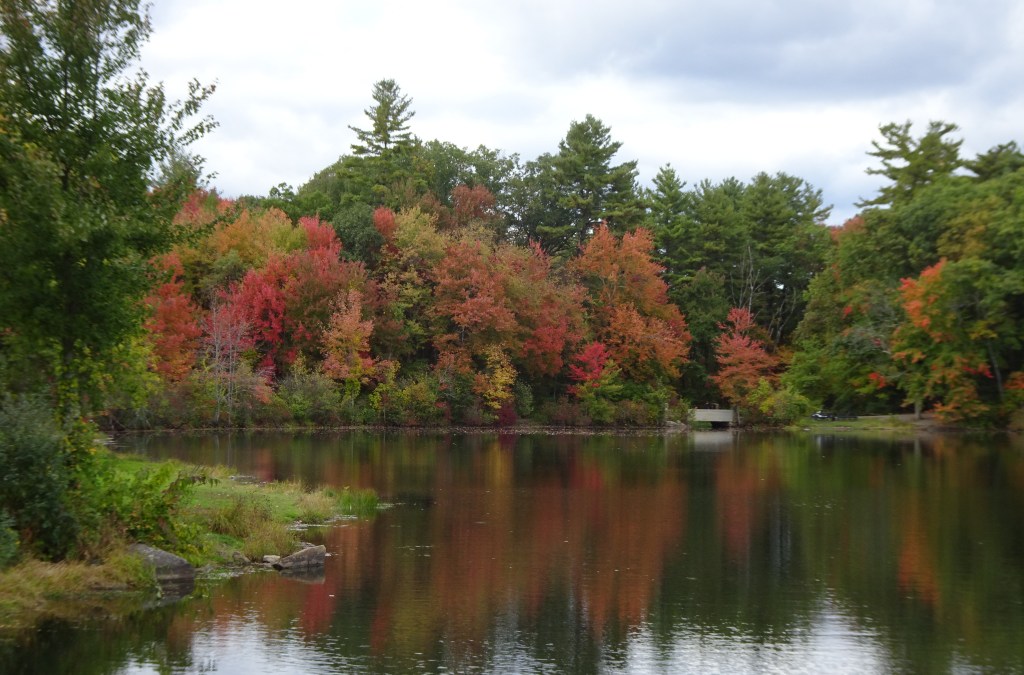 As I work to update the book, my first outing to Choate Park this year with my friend Nancy was simply to capture some of the stunning foliage around Choate Pond, just off Rt. 109 in Medway. The trees did not disappoint. Watery reflections doubled the display of fall color.