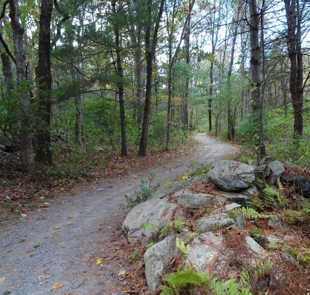 Stone walls follow parts of the path from Choate Park onto Medway High School and beyond