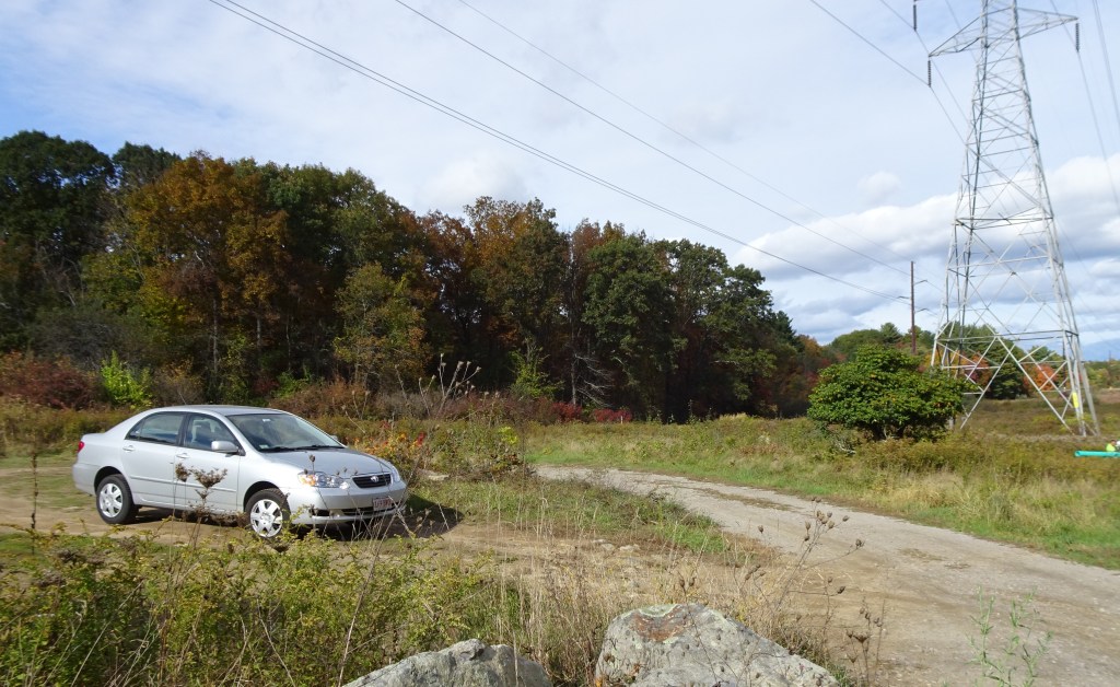Parking area at high tension lines on Adams St.Parking area sign at Lovering St.