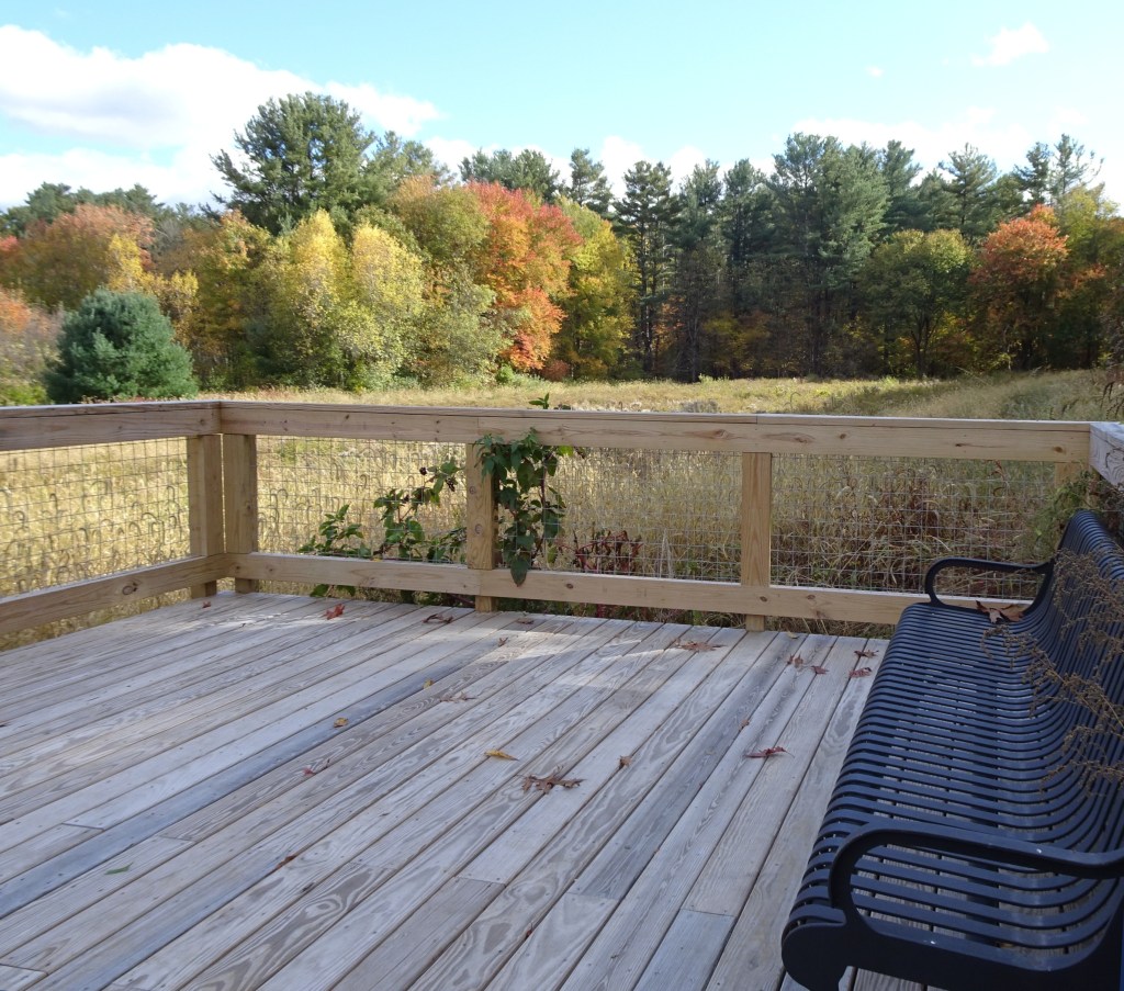 Species such as bluebirds and bobolinks need open space such as the Adams St. meadow to thrive. A handicapped accessible viewing platform hosts a bench for those looking to spend some time relaxing there. Additional connecting trails take visitors behind Medway High School back toward Choate Park.