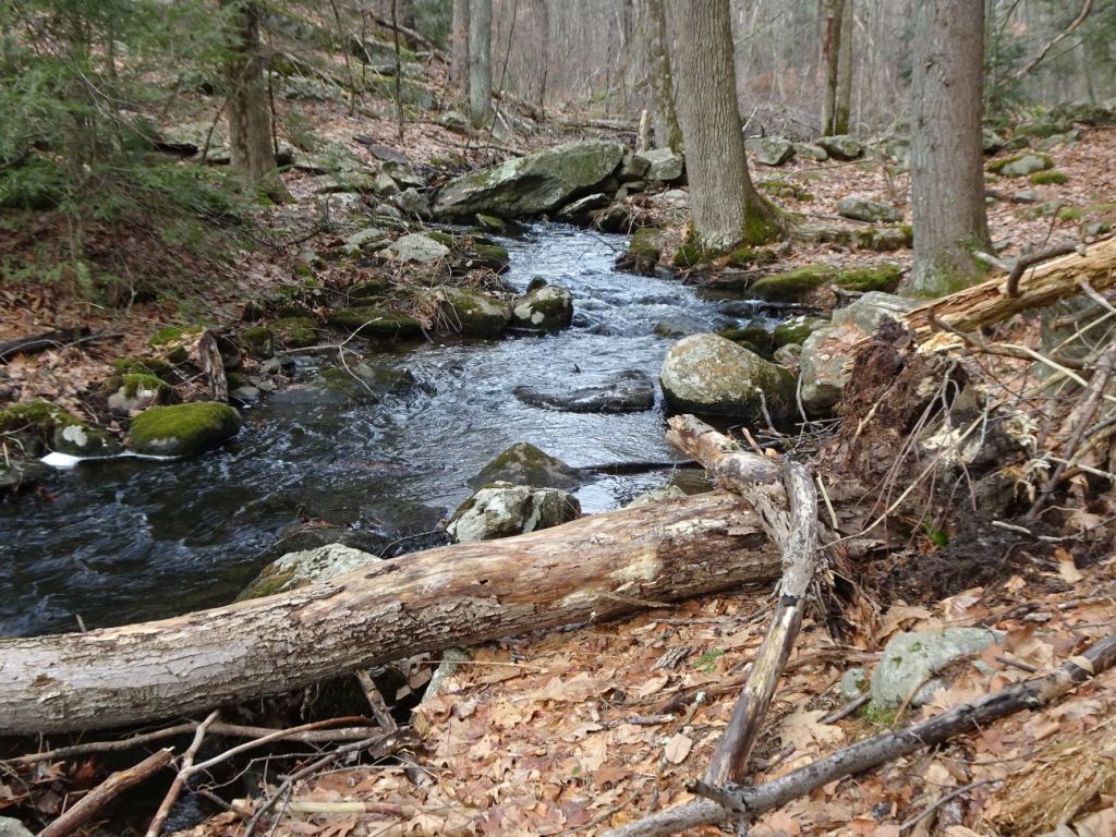 Stream flowing through Forty Caves property, on the way to the Assabet River. Note the wall leading down to the river, which is how we eventually made our way cross to get back where we started